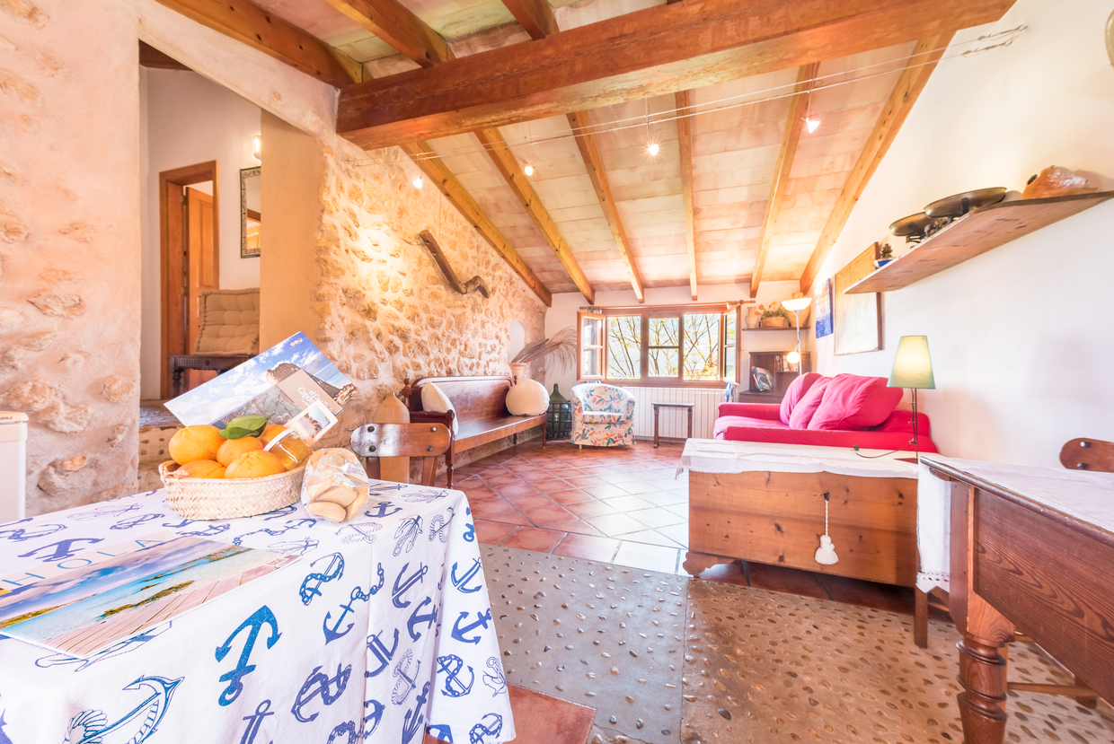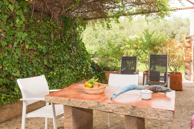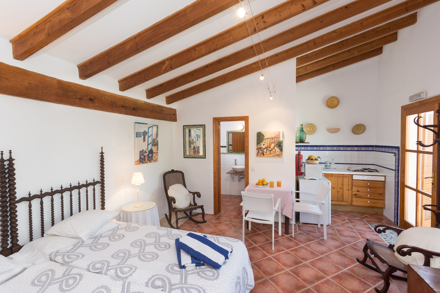 Style rustique. Il dispose d'un salon avec un lit double (180x200) et une grande armoire. Il est équipé d'une cuisine complète et salle de bain privée. Il dispose d'une terrasse meublée, très spacieuse au pied du jardin et avec vue sur la montagne.