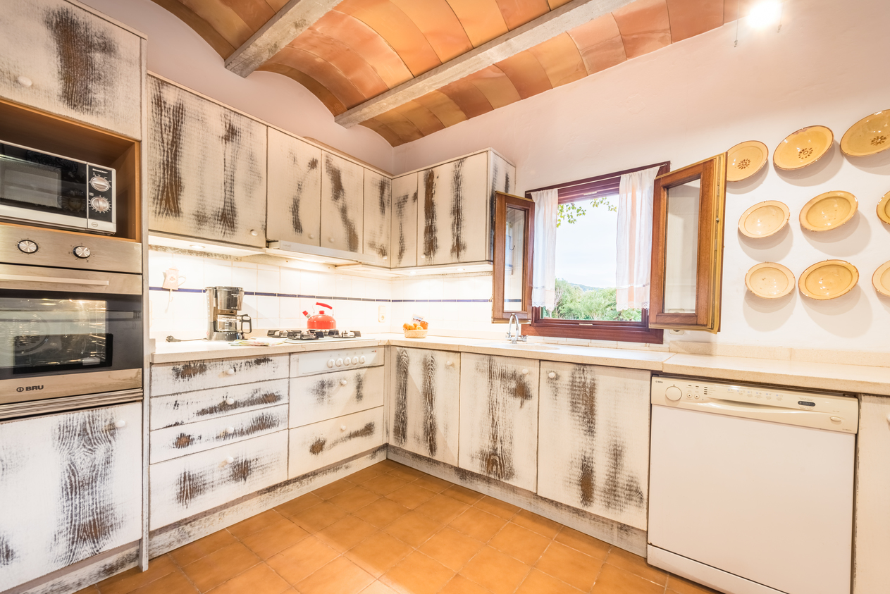 Il a un grand salon, deux chambres avec un lit double (180x200) et de grands placards. Il est équipé d'une cuisine complète (dispose d'un lave-vaisselle) et deux salles de bains privées. Il dispose d'une terrasse meublée, très spacieuse au pied du jardin et avec vue sur la montagne.
